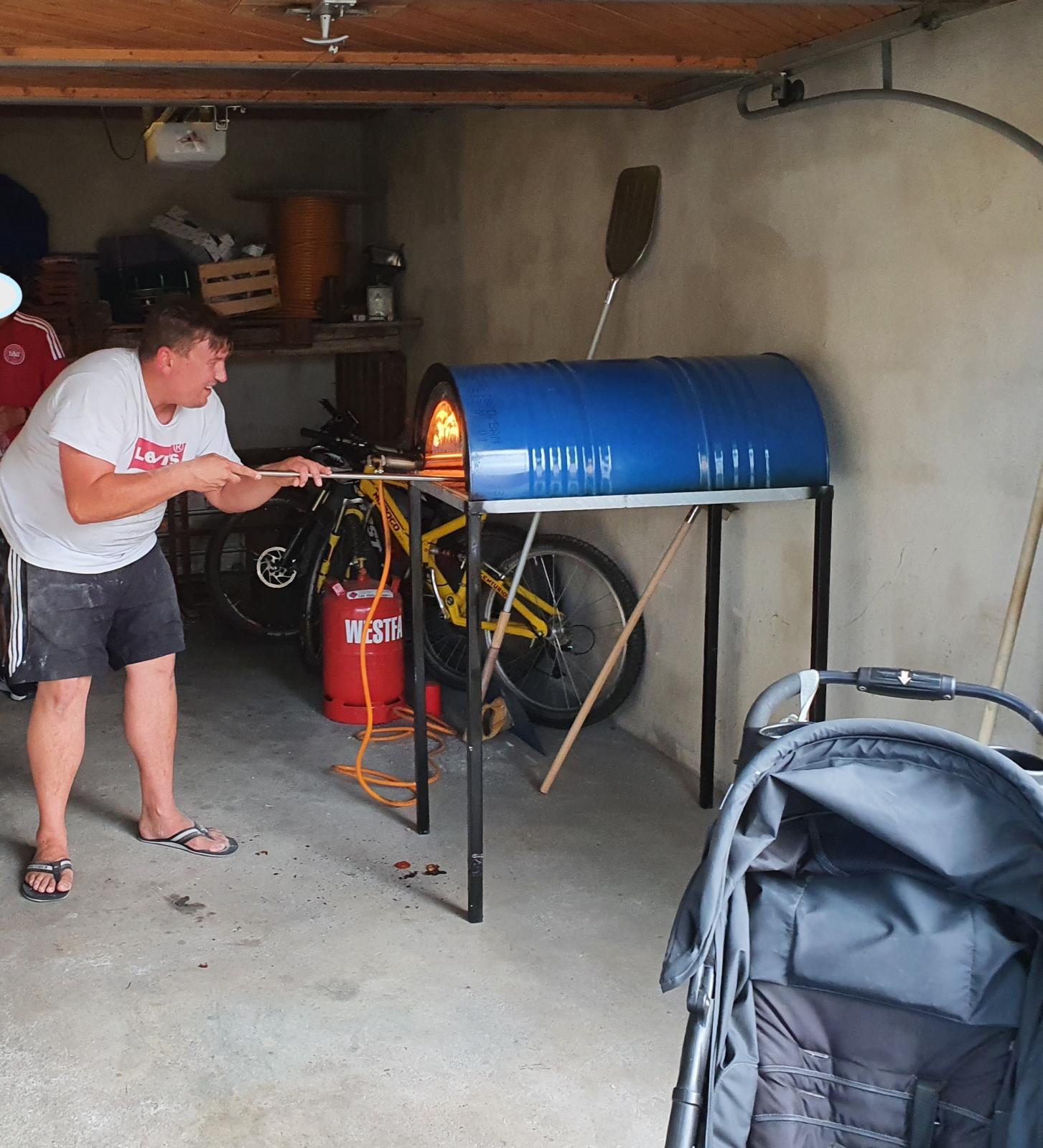 In der Garage entstand aus einem alten Ölfass ein funktionierender Pizzaofen. Hier verbrachte ich unzählige Stunden, probierte Teige, Soßen und Techniken aus – immer auf der Suche nach Perfektion.